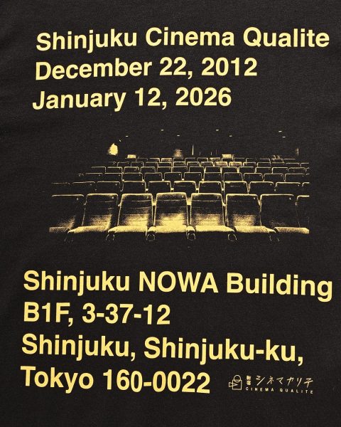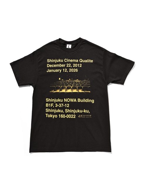 ブラックボディに、シネマカリテを象徴するイエローをベースに構成され、胸には“Shinjuku Cinema Qualite”と開館日・閉館日などの日付やクレジット、客席を線画風に描写したグラフィックが映える映画のエンドロールを思わせるデザインとなっています。